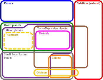 قبل عام 2006 كان الاتحاد الفلكي الدولي يستخدم مصطلح "الكوكب الصغير" رسمياً. لكن خلال اجتماعه عام 2006، قام الاتحاد بإعادة تصنيف الكواكب الصغيرة والمذنبات إلى كواكب قزمية وأجرام نظام شمسي صغيرة.[5] يُطلق عبى الأجرام "كواكب قزمة" إذا كانت جاذبيتها الذاتية كافية لتحقيق التوازن الهيدروستاتيكي، أما الأجرام ذات الشكل غير المنتظم فأصبح يُطلق عليها "أجرام النظام الشمسي الصغيرة" والتي تتضمّن الكواكب الصغيرة والمذنبات، الاتحاد الفلكي الدولي يشير إلى أن: مصطلح "كوكب صغير" يمكن أن يبقى مستخدمًا، لكن عموماً مصطلح "جرم نظام شمسي صغير" يعد أكثر قبولاً، [6] لكن لأجل أغراض الترقيم والتسمية، فإن التصنيف التقليدي الذي يتأرجح في الغالب بين مصطلحين فقط هما كوكب صغير ومذنب، لا يزال متبعاً.