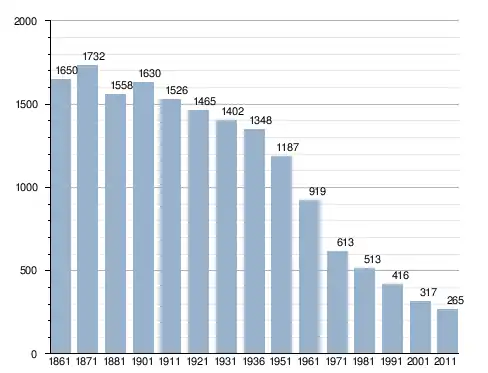 في سنة 1861 بلغ عدد السكان 1٬650 نسمة، وتطور العدد ليصل في سنة 2011 لـ 265 نسمة.