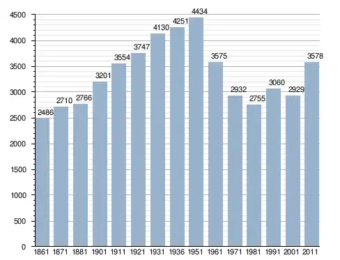 في سنة 1861 بلغ عدد السكان 2٬486 نسمة، وتطور العدد ليصل في سنة 2011 لـ 3٬578 نسمة.
