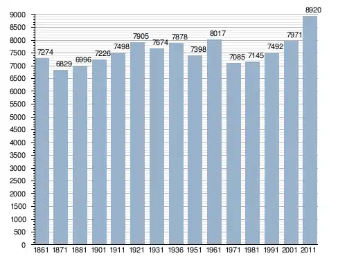 في سنة 1861 بلغ عدد السكان 7٬274 نسمة، وتطور العدد ليصل في سنة 2011 لـ 8٬920 نسمة.