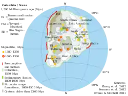 تصوير للقارة العظمى كولومبيا منذ حوالي 1.59 مليار سنة مضت.