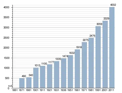 في سنة 1871 بلغ عدد السكان 490 نسمة، وتطور العدد ليصل في سنة 2011 لـ 4٬002 نسمة.