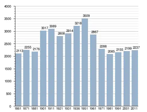 في سنة 1861 بلغ عدد السكان 2٬113 نسمة، وتطور العدد ليصل في سنة 2011 لـ 2٬237 نسمة.