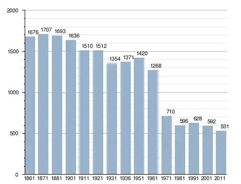 في سنة 1861 بلغ عدد السكان 1٬676 نسمة، وتطور العدد ليصل في سنة 2011 لـ 531 نسمة.