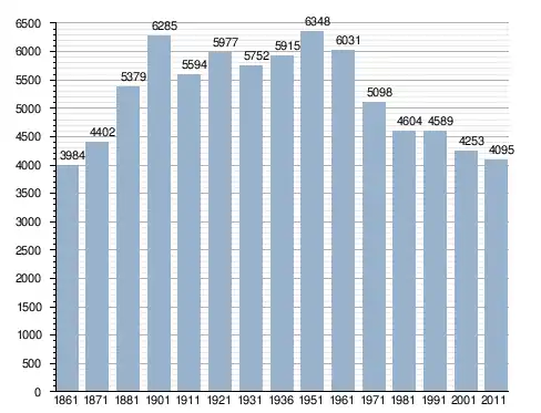 في سنة 1861 بلغ عدد السكان 3٬984 نسمة، وتطور العدد ليصل في سنة 2011 لـ 4٬095 نسمة.