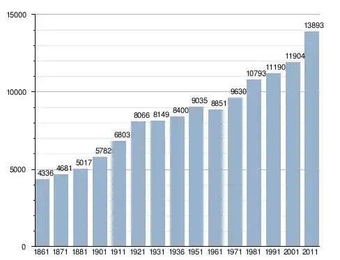 في سنة 1861 بلغ عدد السكان 4٬336 نسمة، وتطور العدد ليصل في سنة 2011 لـ 13٬893 نسمة.