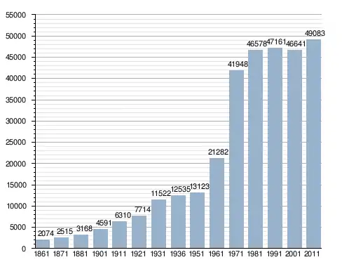 في سنة 1861 بلغ عدد السكان 2٬074 نسمة، وتطور العدد ليصل في سنة 2011 لـ 49٬083 نسمة.