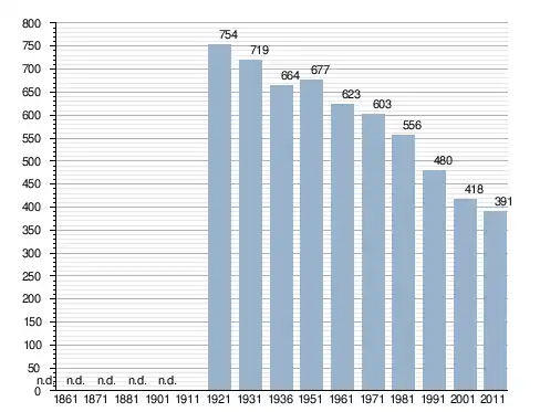 في سنة 1871 بلغ عدد السكان نسمة، وتطور العدد ليصل في سنة 2011 لـ 391 نسمة.