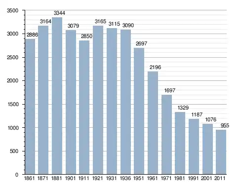 في سنة 1861 بلغ عدد السكان 2٬886 نسمة، وتطور العدد ليصل في سنة 2011 لـ 955 نسمة.