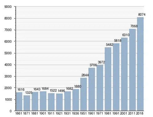في سنة 1861 بلغ عدد السكان 1٬616 نسمة، وتطور العدد ليصل في سنة 2018 لـ 8٬074 نسمة.