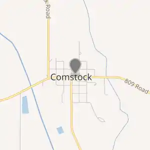 - "صفحة كومستوك (نبراسكا) في GeoNames ID". GeoNames ID. اطلع عليه بتاريخ 6 مارس 2021. الوسيط