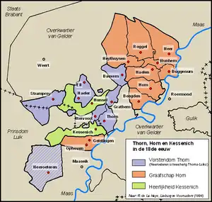 خريطة تبين الإمبراطورية دير ثورن، ومقاطعة هورن وبارونية كيسينيش