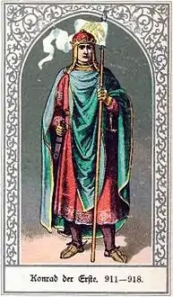 كونراد فرنكونيا (بالألمانية: Konrad I.) ملك ألمانيا، كما يلقب بالشاب ولد (890) وتوفى (.[2][3][4].. - فايلبورغ، 23 ديسمبر 918، ودفن في فولدا) ومن عام 906 كان دوقاً لفرانكونيا وملكاً على الفرنجة الشرقيين بين عامي 911 و918.