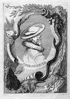 |CitationClass=تم تجاهله (مساعدة) - Swiss, 17th century, Born 1618, in Zurich; died 1689, in Zurich. "MEYER, Conrad (1618 - 1689), Painter, engraver". Oxford, United Kingdom: Oxford University Press. مؤرشف من الأصل في 20 أغسطس 2016. اطلع عليه بتاريخ 07 أغسطس 2016. الوسيط