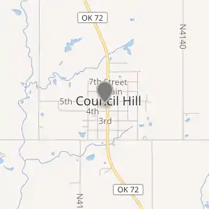 كونسيل هيل (بالإنجليزية: Council Hill, Oklahoma) هي بلدة أمريكية تقع في الولايات المتحدة في مقاطعة كوسكوغي، أوكلاهوما.[3] يقدر عدد سكانها بـ 129 نسمة ومساحتها 0.8 كم2 و وترتفع عن سطح البحر 201 متر.