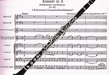 في عام 1791، ألف موزارت كونشرتو للكلارينيت المصنفة في كوخل رقم 622. تتخذ السمفونية النمط التقليدي سريع – بطئ – سريع، وهي أحد أواخر الأعمال التي أتمها موزارت ومات بعدها بشهور. تتميز المقطوعة بالحوار المميز بين الكلارينيت المنفرد والأوركسترا، ولا تحتوي على مقطوعة ارتجالية للكلارينيت – المعروفة بالكادنزا.
