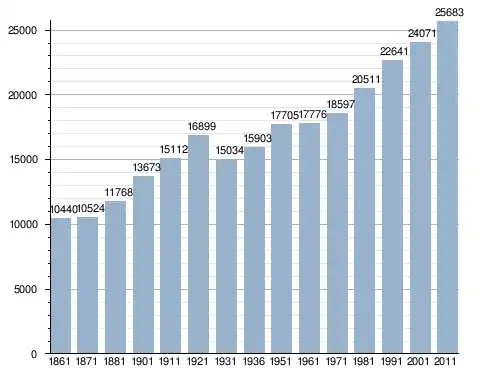 في سنة 1861 بلغ عدد السكان 10٬440 نسمة، وتطور العدد ليصل في سنة 2011 لـ 25٬683 نسمة.