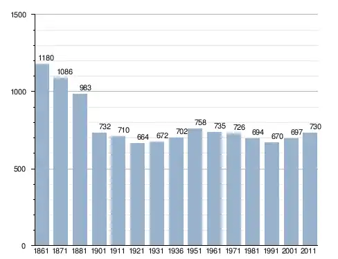 في سنة 1861 بلغ عدد السكان 1٬180 نسمة، وتطور العدد ليصل في سنة 2011 لـ 730 نسمة.