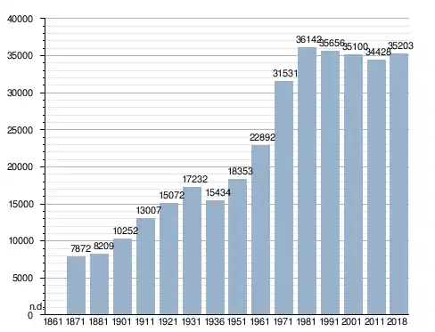 في سنة 1871 بلغ عدد السكان 7٬872 نسمة، وتطور العدد ليصل في سنة 2018 لـ 35٬203 نسمة.