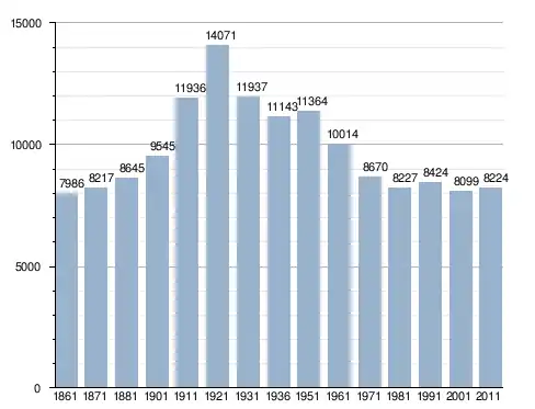 في سنة 1861 بلغ عدد السكان 7٬986 نسمة، وتطور العدد ليصل في سنة 2011 لـ 8٬224 نسمة.