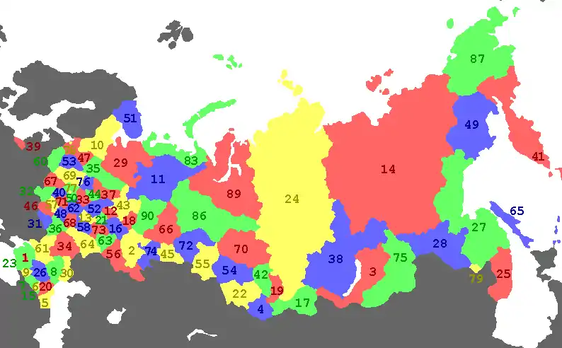 وفقاً للدستور الروسي، تنقسم روسيا الاتحادية إلى من 85 كيان إداري مستقل.
