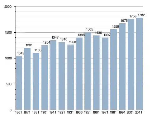 في سنة 1861 بلغ عدد السكان 1٬043 نسمة، وتطور العدد ليصل في سنة 2011 لـ 1٬782 نسمة.