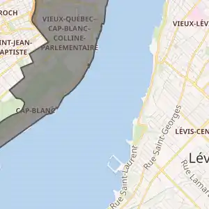 - الرأس الأبيض (كيبك) تحتوي على المنطقة بين رأس ديامان (كيبك) ونهر سانت لورانت وكنيسة نوتر دام دي لاكارد.