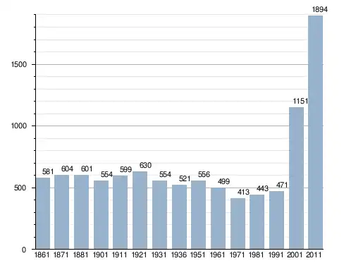 في سنة 1861 بلغ عدد السكان 581 نسمة، وتطور العدد ليصل في سنة 2011 لـ 1٬894 نسمة.