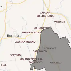 - "صفحة كيرانوفا (بافيا) في خريطة الشارع المفتوحة". OpenStreetMap. اطلع عليه بتاريخ 4 مارس 2021. الوسيط