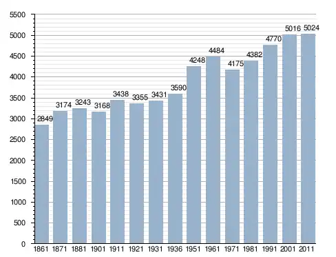 في سنة 1861 بلغ عدد السكان 2٬849 نسمة، وتطور العدد ليصل في سنة 2011 لـ 5٬024 نسمة.