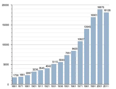 في سنة 1861 بلغ عدد السكان 1٬756 نسمة، وتطور العدد ليصل في سنة 2011 لـ 18٬128 نسمة.