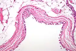 ![]() صورة مجهرية لكيسة قصبية المنشأ منصفية صورة مجهرية لكيسة قصبية المنشأ منصفية | |