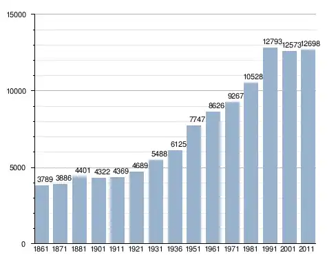 في سنة 1861 بلغ عدد السكان 3٬789 نسمة، وتطور العدد ليصل في سنة 2011 لـ 12٬698 نسمة.
