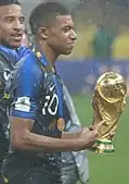 في 15 يوليو، سجل مبابي بتسديدة على بعد 25 ياردة ضد كرواتيا في نهائي كأس العالم 2018 في مباراة فوز فرنسا 4–2.[98] وأصبح ثاني مراهق –بعد بيليه– يسجل في نهائي كأس العالم. فاز المنتخب الفرنسي بكأس العالم 2018، وأنهى مبابي البطولة كثاني أفضل الهدافين بالشراكة مع عدد من اللاعبين. كما حصل على جائزة أفضل لاعب شاب عن أدائه خلال البطولة.[12][13] هنأه بيليه على وسائل التواصل الاجتماعي، وقال "مرحبا بك في النادي".[99]