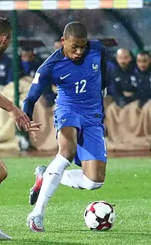 كيليان مبابي لوتين (بالفرنسية: تنطق بالفرنسية: [kiljan (ɛ)mbape lɔtɛ̃] ؛ مواليد 20 ديسمبر 1998) هو لاعب كرة قدم فرنسي يلعب في مركز الهجوم مع نادي باريس سان جيرمان في الدوري الفرنسي ومنتخب فرنسا لكرة القدم.[6] يُعتبر أحد أفضل اللاعبين في العالم، وهو معروف بدقة الإنهاء، والمراوغة، والقوة، والسرعة العالية.[7][8][9]