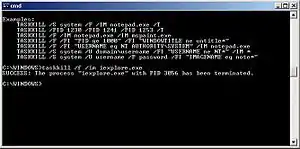 |CitationClass=تم تجاهله (مساعدة) - "Taskkill". Microsoft TechNet. مؤرشف من الأصل في 3 فبراير 2018. اطلع عليه بتاريخ 24 فبراير 2015. الوسيط