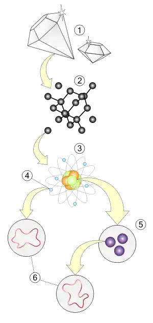 3.ذرية: بروتونات، نيترونات، إلكترونات.
