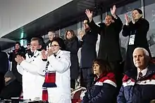 |CitationClass=تم تجاهله (مساعدة); تحقق من التاريخ في:|تاريخ الوصول=(مساعدة) - Haas, Benjamin (9 فبراير 2018). "US vice-president skips Olympics dinner in snub to North Korea officials". the Guardian. مؤرشف من الأصل في 19 أبريل 2020. اطلع عليه بتاريخ 9 فبراير 2018. الوسيط