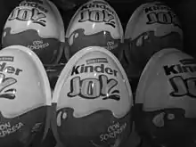 كيندر سبرايز بيضة الشوكولاتة التي تحتوي على لعبة داخل علبة من البلاستيك.