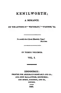 |CitationClass=تم تجاهله (مساعدة) - "معلومات عن كينيلورث (رواية) على موقع gutenberg.org". gutenberg.org. مؤرشف من الأصل في 17 يونيو 2019. الوسيط