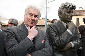 ![]() كين فوليت أمام تمثال له في مدينة فيتوريا-غاستايز، إسبانيا | |