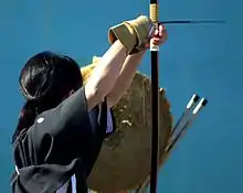 - هيكي واكه (引分け) : دفع القوس إلى الأمام وسحب الوتر إلى الخلف بوقت واحد.