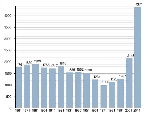 في سنة 1861 بلغ عدد السكان 1٬761 نسمة، وتطور العدد ليصل في سنة 2011 لـ 4٬371 نسمة.
