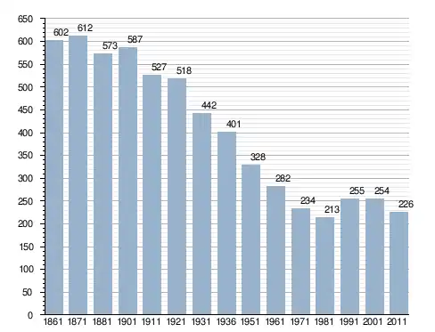 في سنة 1861 بلغ عدد السكان 602 نسمة، وتطور العدد ليصل في سنة 2011 لـ 226 نسمة.