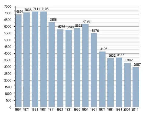 في سنة 1861 بلغ عدد السكان 6٬894 نسمة، وتطور العدد ليصل في سنة 2011 لـ 2٬957 نسمة.