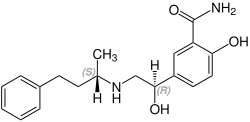 يحتوي لابيتالول اثنين من المراكز المجسمة ويتألف من أربعة ستيريويسوميرس. هذا هو مزيج من ( R ، R )،، ( S ، R ) -، ( R ، S ' ) - و ( S ، S ) - شكل: