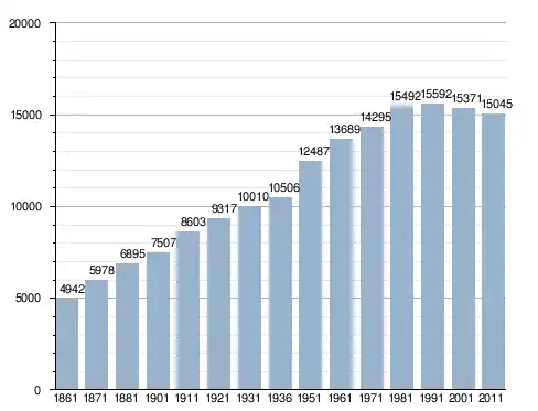 في سنة 1861 بلغ عدد السكان 4٬942 نسمة، وتطور العدد ليصل في سنة 2011 لـ 15٬045 نسمة.