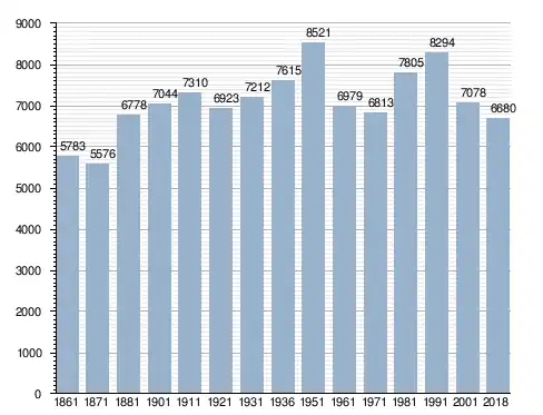 في سنة 1861 بلغ عدد السكان 5٬783 نسمة، وتطور العدد ليصل في سنة 2018 لـ 6٬680 نسمة.