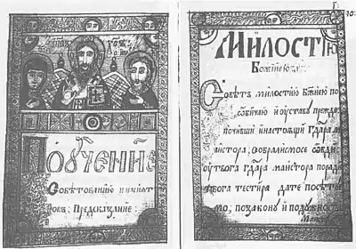 في الأوساط الأدبيّة، يُشَار إلى كتاب لازار يوفانوفيتش الصادر عام 1842م باسم إيبيستوليا (بالسيريلية: Епистолија)، وهو محفوظ في مكتبة المتحف الوطني الصربي ضمن مجموعته للكتب القديمة والنادرة. وكان تأليف الكتاب بِطَلَب من الكنيسة التّبْشيريّة في قرية أُوسْيِيشاني في منطقة دوبوي، وقد كتبه يوفانوفيتش في بِلْدَة تيشان.[16] ويحتوي الكتاب على رسالة مقدسة منسوبة للمسيح ولكنها غير معروفة المصدر وكذلك لم تعتمدها الكنيسة، أي أنها بمصطلح آخر رسالة أبوكريفيَّة، وهي معروفة بأسماء عدة، مثل رسالة المسيح من الجنة، ورسالة من الجنة، ورسالة الأحد.[8][9] تمتلك الرسالة عددًا كبيرًا من النُّسَخ والصِّيَاغَات بلغات كثيرة في التقاليد المسيحية الشرقية والغربية.[ملاحظة 3] وقد ذٌكِرَت لأول مرة في سنة 584م، وذلك في رسالة كتبها ليسينيان أسْقُف مدينة قرطاجنة (في الجزء البيزنطي من إسبانيا)، حيث أنه أنكر ورفض تلك الرسالة المقدسة بشدة في رسالته. وتَدَّعي الرسالة المقدسة أن كاتبها هو المسيح عيسى نفسه، وأنها نزلت من الجنة إلى روما أو القدس في معظم الروايات.[9][21] وتَلْعَن الرسالة هؤلاء الذين يُشَكِّكُون في مصْدَرِهَا المٌقَدَّس، كما وتَسْتَبْشِر الخير للذين ينسخونها وينشرونها بشكل أكبر، وأيضًا للذين يقرؤونها على العَلَن. وكان يُمْكِن استخدامها أيضًا كتميمة شخصيّة أو منزلية.[9][22] لم تَتِّفق جميع سُلطَات الكنيسة الشرقية على إنكارها، بل إن هنالك دلالات تقول بأن الرسالة كانت تُقْرَأ أحيانًا أثناء القُدَّاس في الكنيسة.[22]