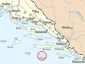 | إحداثيات | 42°45′00″N 16°52′00″E |